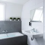 Τα μπάνια είναι εξοπλισμένα με ξεχωριστή τουαλέτα και ντους, καθώς και με στεγνωτήρας μαλλιών και καλλυντικά.